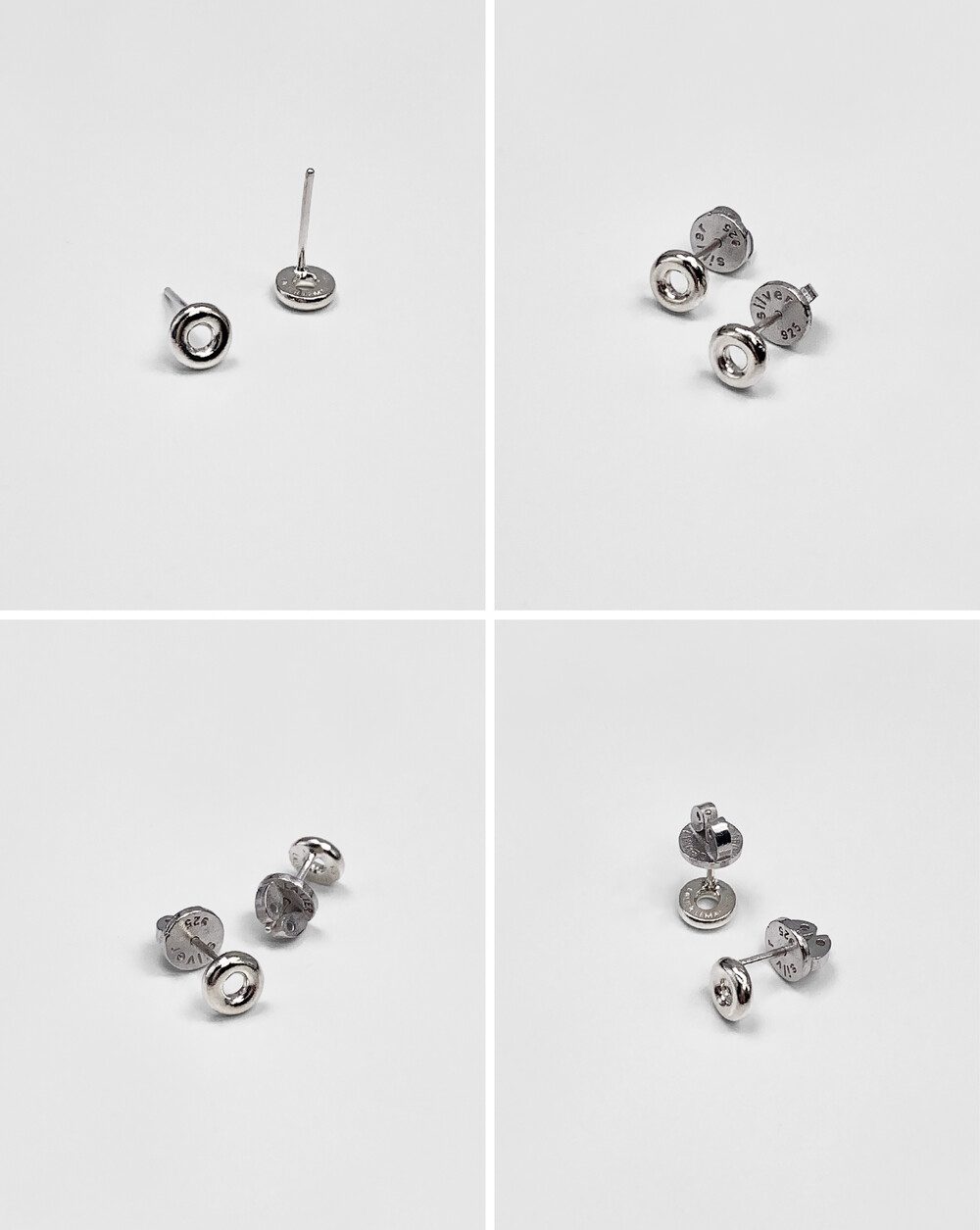 뒷장식에 있는 두개의 긴타원형이 귀걸이침을 잡아주는 원리로 돌리듯이 끼고 빼면